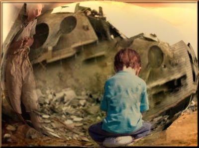 fuoco di bombe su infanzie sbriciolate